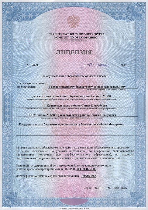 В качестве юридического лица ГБОУ школа №568 зарегистрирована 18.11.1994 г.